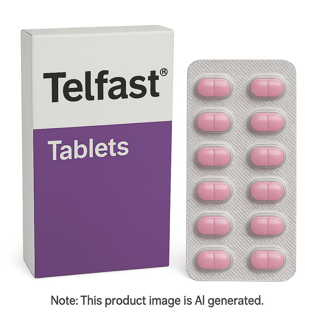 Telfast Tablets are a widely prescribed non-sedating antihistamine used for the relief of seasonal allergies such as hay fever and chronic urticaria. These symptoms may include sneezing, runny nose, itchy or watery eyes, and itchy skin rashes. Telfast is suitable for adults and adolescents over 12 years of age and is especially useful for those needing fast, effective, and long-lasting symptom relief without drowsiness.