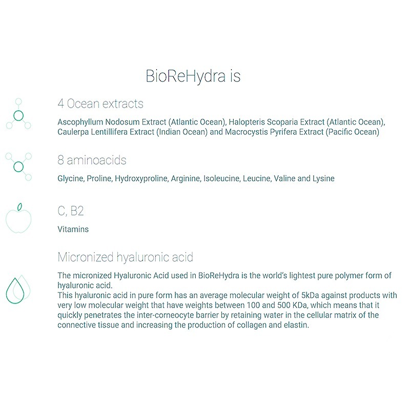 BioReHydra boasts a sophisticated formulation featuring over 15 active ingredients. Key components such as hyaluronic acid, amino acids, and vitamins work synergistically to deliver powerful bio-stimulation, revitalization, and moisturization. The precisely calibrated blend ensures a targeted and effective post-treatment application.