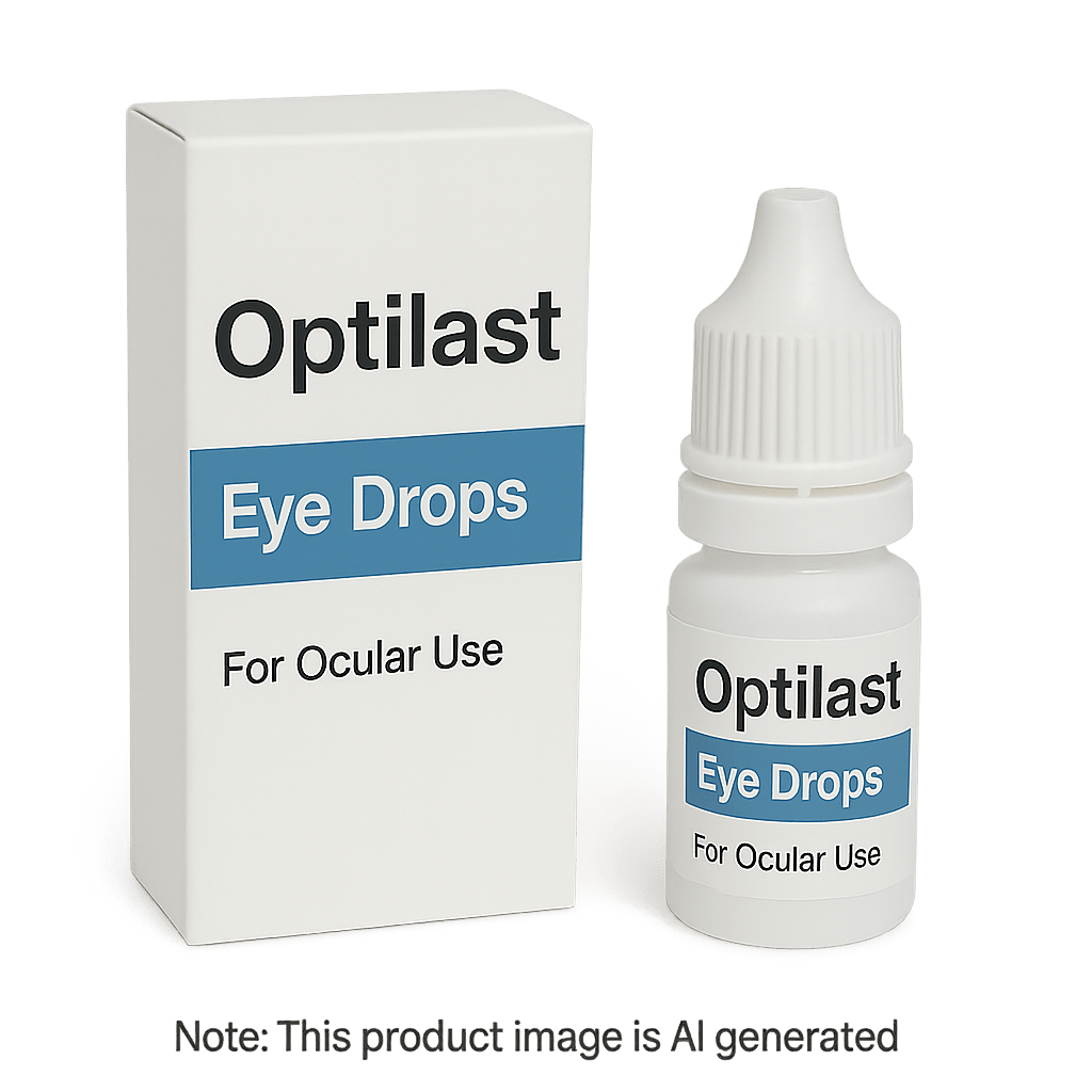 • Optilast Eye Drops are used to treat symptoms of allergic conjunctivitis, including itchy, red, and watery eyes, commonly triggered by hay fever or allergens.